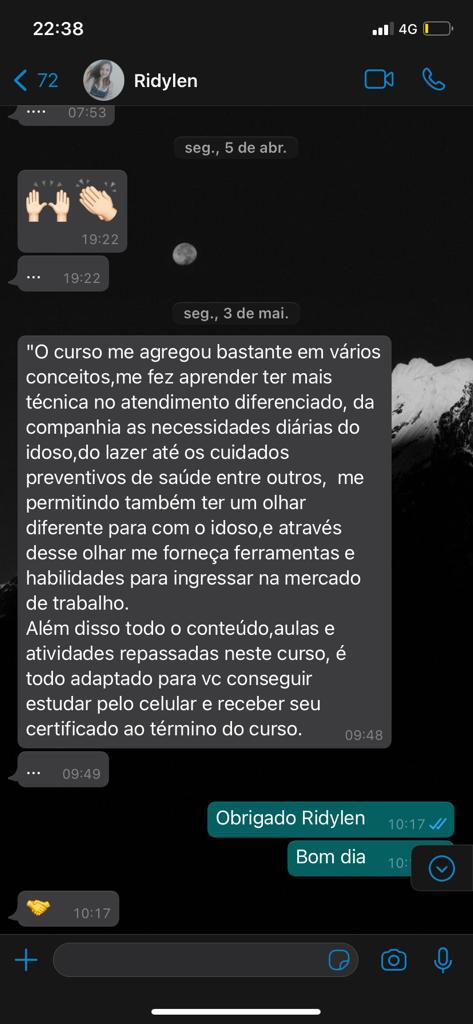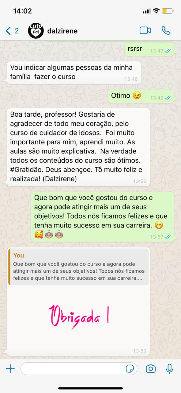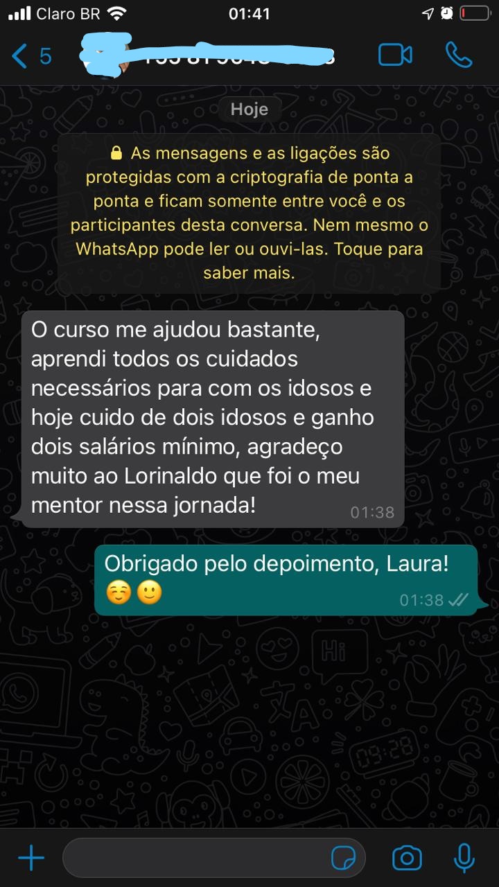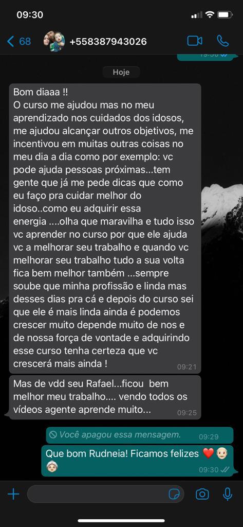 Você terá acesso a um curso completo, totalmente on-line, de qualidade visual, linguagem de fácil entendimento, que você aprenderá de fato como cuidar de seu idoso ou até mesmo trabalhar com idosos, sim, além de poder utilizar o que aprendeu com seu parente, você também poderá gerar renda.